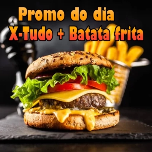 Pão, 2 carnes, 2 mussarelas, 2 presuntos, 2 ovos, dobro de bacon, alface, tomate, milho, batata palha